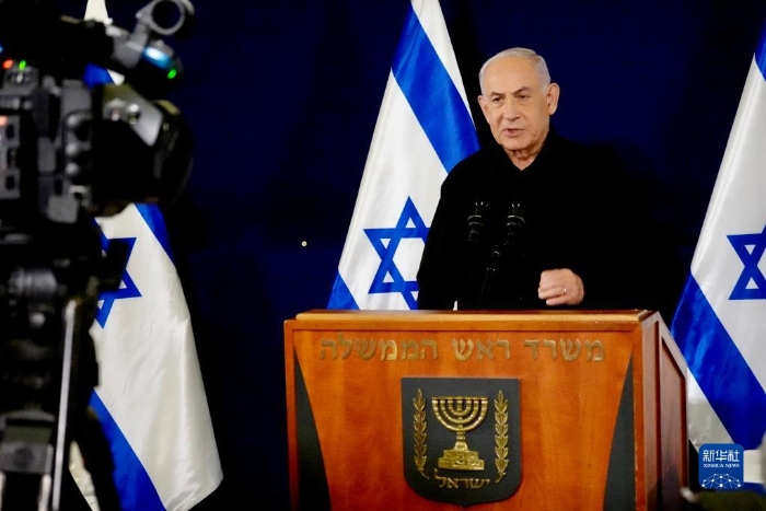 10月30日,以色列總理內(nèi)塔尼亞胡在特拉維夫出席記者會。新華社記者王卓倫攝
