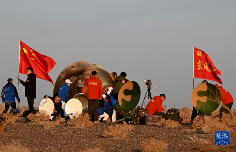 10月31日,神舟十六號載人飛船返回艙在東風(fēng)著陸場成功著陸。