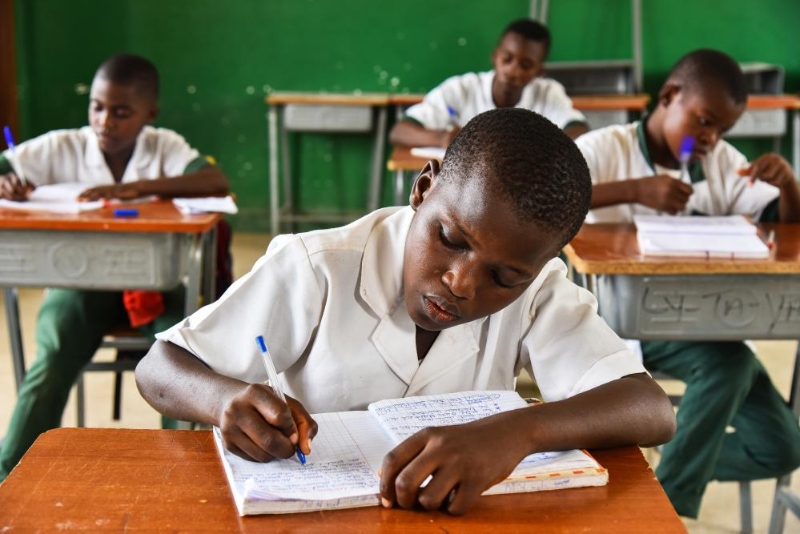 2023年1月10日,在喀麥隆濱海大區(qū)亞巴西,一名學(xué)生在中國(guó)援建的農(nóng)業(yè)職業(yè)技術(shù)中學(xué)上課。新華社發(fā)(科普索攝)