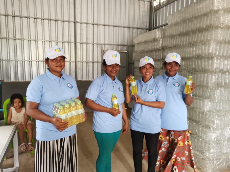 2020年7月31日,村民在柬埔寨干丹省莫穆坎普縣斯瓦安普鄉(xiāng)的洗潔精加工廠展示生產(chǎn)的洗潔精。中國(guó)援柬減貧示范合作項(xiàng)目推動(dòng)這里的兩個(gè)扶貧村在新冠疫情下持續(xù)發(fā)展,煥發(fā)出新活力。新華社發(fā)
