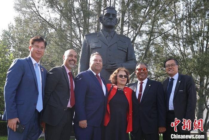 在參訪最后環(huán)節(jié),美方代表團(tuán)成員陸續(xù)向陳納德將軍雕像敬獻(xiàn)上一束白色雛菊表達(dá)敬意。98歲的麥克馬倫走到雕像前,鄭重?cái)[放好手里的鮮花并向雕像敬禮致意。離開(kāi)時(shí),他的腳步有些蹣跚。(完)