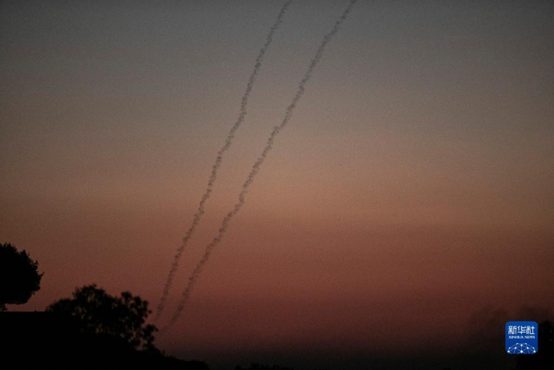 這張10月30日在加沙邊境以色列一側(cè)拍攝的照片顯示,從加沙地帶發(fā)射的火箭彈在空中留下煙軌。
