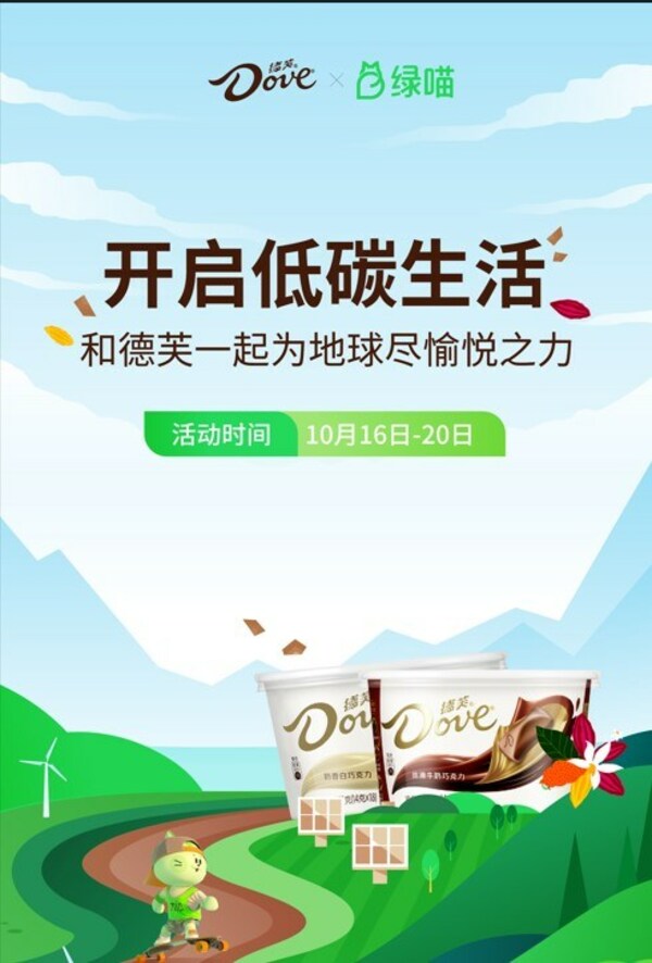 2023年10月,暨德芙碗裝巧克力包裝煥新全面上市之際,德芙再次延伸"愉悅之力",上線動(dòng)畫視頻將品牌包裝可持續(xù)歷程娓娓道來,并攜手多元化個(gè)人減碳應(yīng)用"綠喵"開啟為期5天的線上減碳打卡行動(dòng),號(hào)召更多消費(fèi)者參與和記錄可持續(xù)生活,為地球共盡愉悅之力。