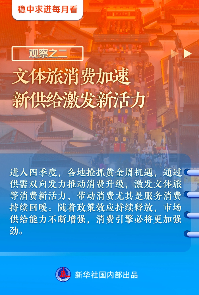 【記者觀察】進入四季度,各地搶抓黃金周機遇,通過供需雙向發(fā)力推動消費升級,激發(fā)文體旅等消費新活力,帶動消費尤其是服務消費持續(xù)回暖。隨著政策效應持續(xù)釋放,市場供給能力不斷增強,消費引擎必將更加強勁。