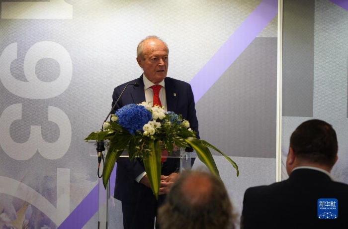 10月30日,在匈牙利布達(dá)佩斯,匈牙利前總理邁杰希·彼得在《世界記憶、和平愿景——南京大屠殺史實(shí)展》開展儀式上致辭。新華社記者 陳浩 攝
