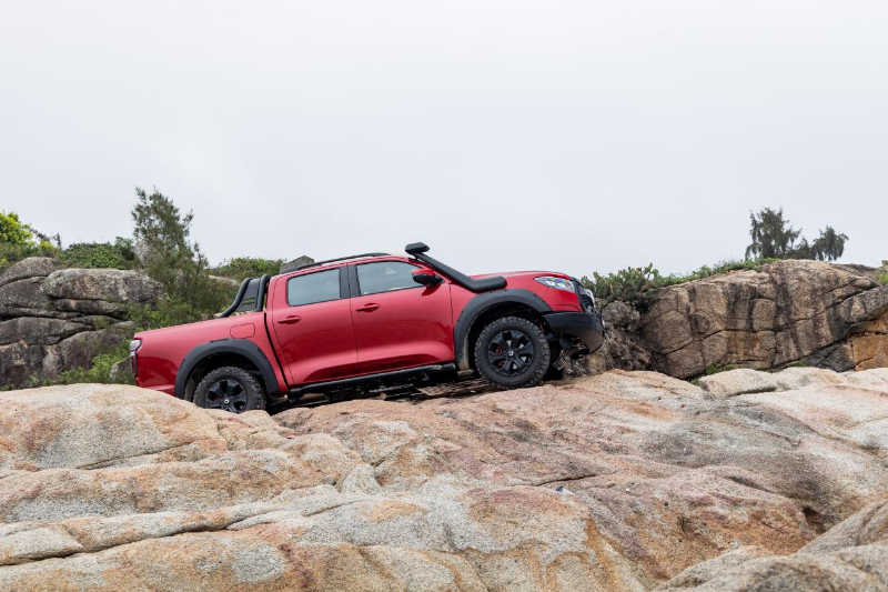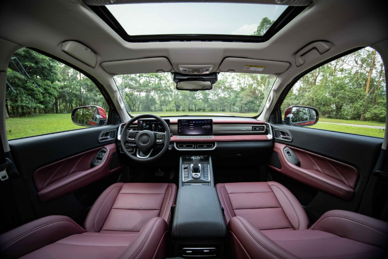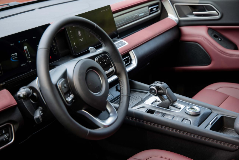 2023款越野炮內(nèi)飾采用大面積軟質(zhì)包覆,搭配威尼托紅顏色,高級(jí)感十足。標(biāo)配真皮方向盤、自動(dòng)大燈、電動(dòng)天窗、藍(lán)牙鑰匙等越級(jí)裝備,懸浮設(shè)計(jì)的12.3 英寸智聯(lián)觸控屏+7英寸彩色液晶儀、鐳雕工藝發(fā)光裝飾板,和目前主流乘用車別無(wú)二致。在皮卡乘用化的大趨勢(shì)下,硬派皮卡的內(nèi)飾、功能和舒適配置也在向乘用車看齊。