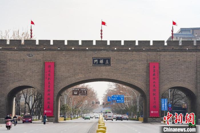 圖為2022年西安城墻玉祥門城門春聯(lián)。 西安城墻景區(qū)供圖