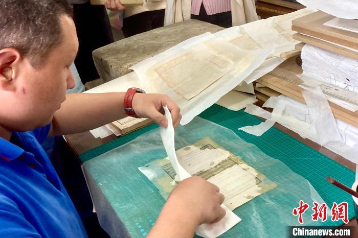 10月31日,工作人員在中國(guó)書(shū)店琉璃廠店修復(fù)古籍。記者 徐婧 攝