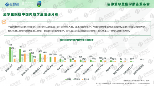 HEA官網(wǎng)數(shù)據(jù)顯示,2021/2022學(xué)年中國內(nèi)地學(xué)生主要入讀的院校包括:都柏林大學(xué)(822)、科克大學(xué)(720)、都柏林圣三一大學(xué)(520)、都柏林理工大學(xué)(462)、大西洋理工大學(xué)(291)、高威大學(xué)(175)、香農(nóng)理工大學(xué)(172)、利莫瑞克大學(xué)(105)、都柏林城市大學(xué)(100)、東南理工大學(xué)(100)、梅努斯大學(xué)(91)、唐道克理工學(xué)院(48)、芒斯特理工大學(xué)(41)、皇家外科醫(yī)學(xué)院(18)。