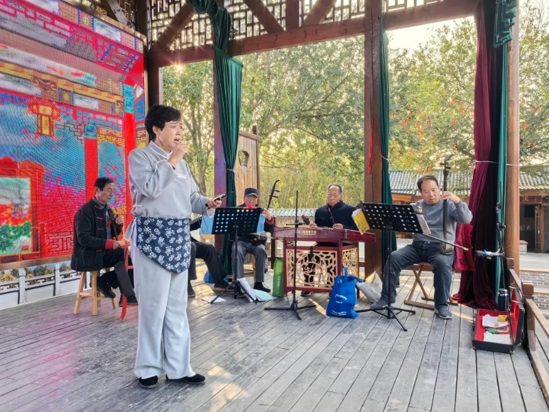 山東省東營市利津縣鹽窩鎮(zhèn)南嶺村的老戲臺上,村民正在表演傳統(tǒng)曲藝。新華社記者 袁敏 攝