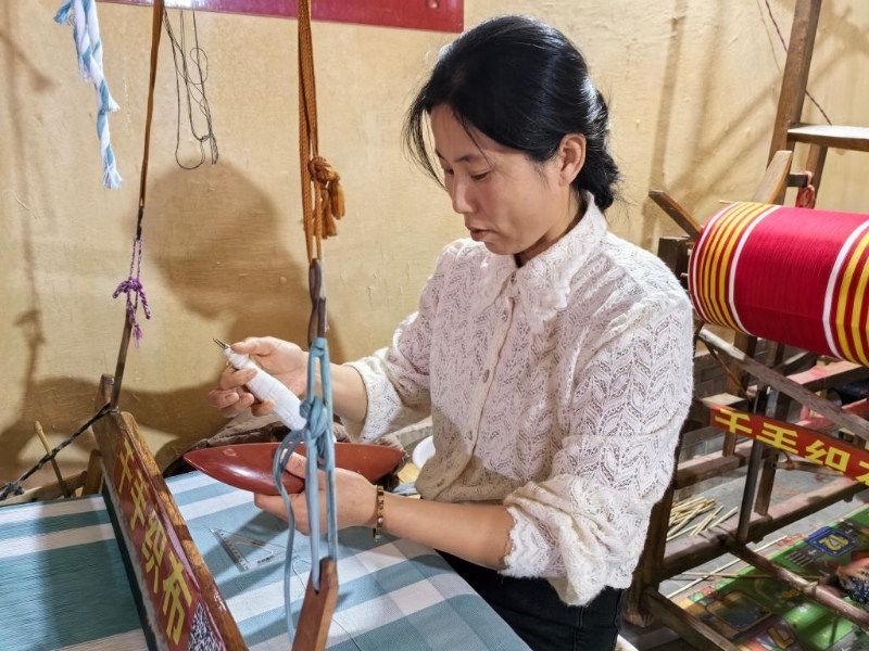 陳云生和妻子常在短視頻平臺上直播織布過程,并邀請線下的游客親自動手體驗傳統(tǒng)織布工藝。“這是老祖宗留下的好東西,我們希望能讓更多人看到?!彼f。