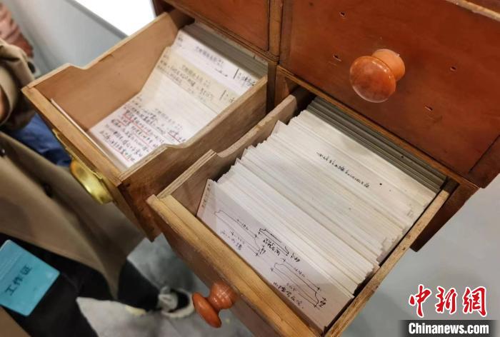 柴澤俊先生的卡片抽屜。 中新社記者 胡健 攝