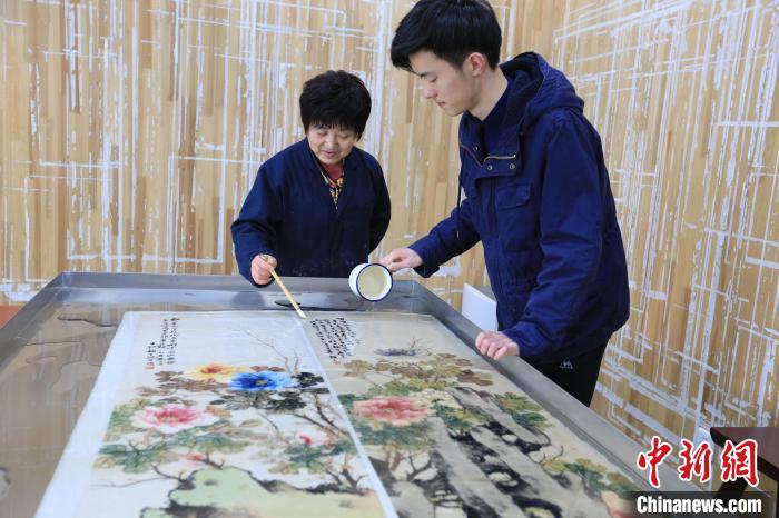 曹鶴俊學(xué)習(xí)古字畫修復(fù)裝裱技術(shù)。浙江工商職業(yè)技術(shù)學(xué)院供圖