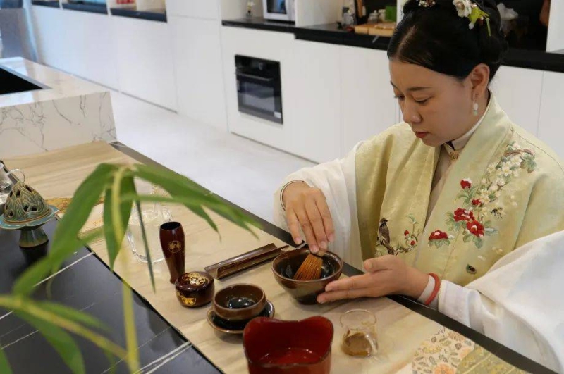 芷岸是一種心境,追尋東方文化的清逸與雅致,崇尚自在風(fēng)雅的生活態(tài)度?;顒?dòng)現(xiàn)場,與會(huì)嘉賓還在老師的帶領(lǐng)下參與了“穿越千年”的宋代七湯點(diǎn)茶制作,親身感受了極致東方雅韻與東方生活美學(xué)。