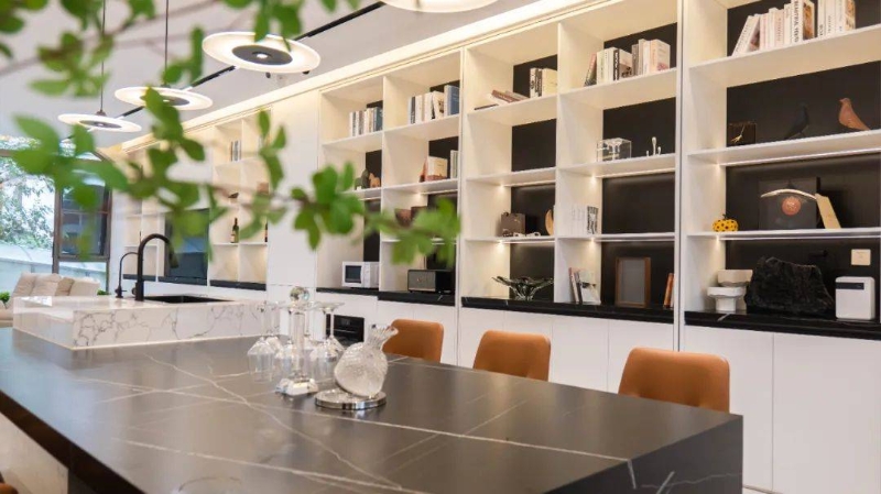 深入洞察用戶需求,芷岸錨定了將東方摩登與當(dāng)代隱奢美學(xué)極致融合、去繁歸簡的設(shè)計(jì)風(fēng)格。張國輝女士強(qiáng)調(diào),“芷岸不追求最昂貴,但追求最具文化和品味的質(zhì)感,舍去了豪華宴會(huì)廳、游泳池、行政酒廊、會(huì)議室等配置,專注打造靈動(dòng)廚房、收納BOX和智慧洗烘?!?/p>