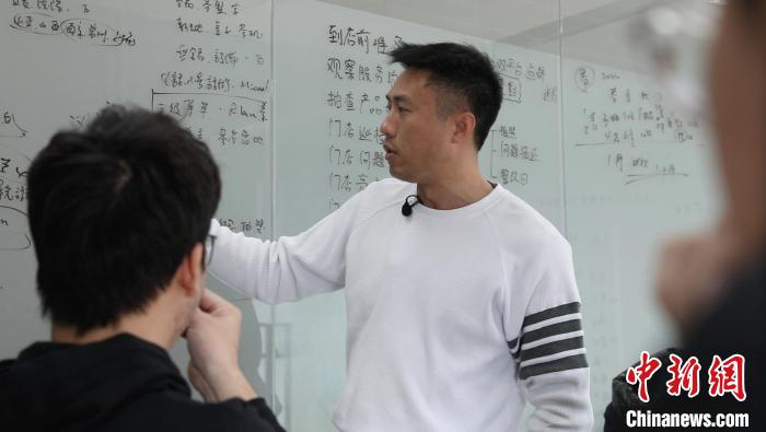 1月22日,黃國(guó)翔與公司員工開(kāi)會(huì)。中新社記者 張亨偉 攝