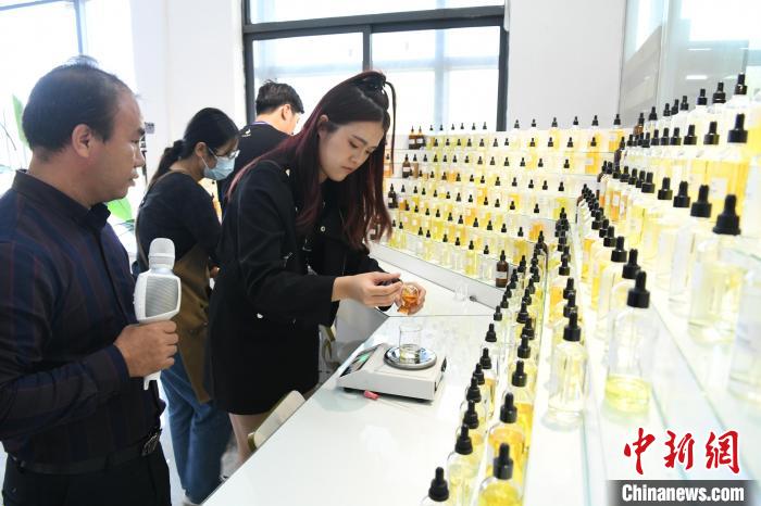 10月31日,兩岸媒體記者體驗香水調(diào)制過程。中新社記者 蔣雪林 攝