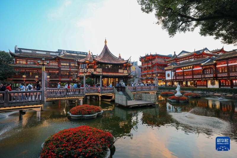 11月3日,游客在上海豫園的湖心亭參觀。