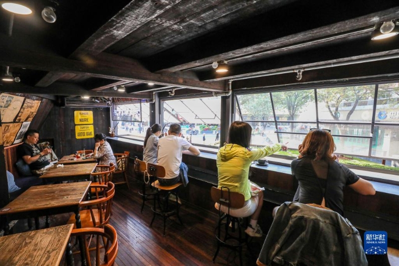 11月3日,顧客在武康大樓的一家咖啡館休憩。