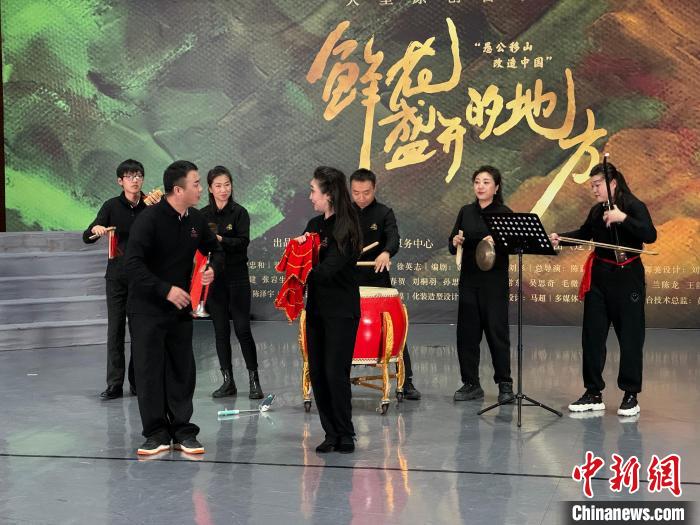 大型原創(chuàng)音樂劇《鮮花盛開的地方》音樂元素豐富,融入了二人轉(zhuǎn)、東北秧歌等音樂形式。記者韓宏攝