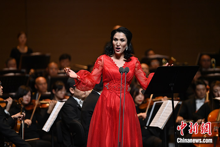 圖為烏茲別克斯坦共和國女高音獨唱演員諾瑪托娃·瑪麗卡·拉希莫夫娜演唱。 中新社記者 李亞龍 攝