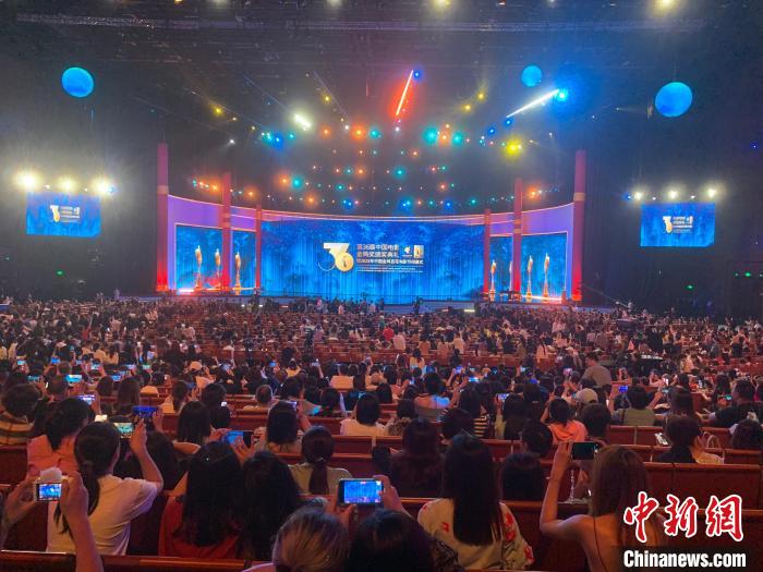11月4日晚,第36屆中國電影金雞獎(jiǎng)?lì)C獎(jiǎng)典禮暨2023年中國金雞百花電影節(jié)閉幕式在廈門舉行。中新社記者 王東明 攝