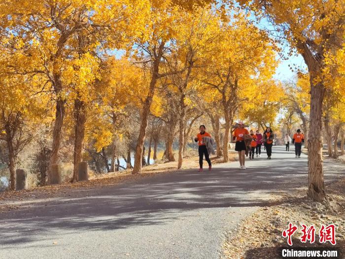 中新網(wǎng)新疆巴楚11月4日電(地里夏提)11月4日,“秋賞胡楊”2023年新疆巴楚縣上海援疆“小胡楊杯”徒步大賽在該縣紅海景區(qū)舉行,吸引了1000余名徒步愛(ài)好者參賽。選手們迎著秋日暖陽(yáng),在徒步行走過(guò)程中欣賞美麗的胡楊林風(fēng)光。