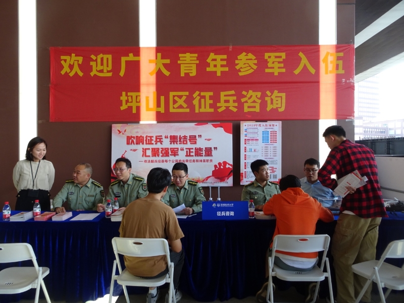 青春風(fēng)華正茂,參軍無上光榮。金秋季節(jié),適逢畢業(yè)生“秋招季”,坪山區(qū)人民政府征兵辦公室結(jié)合坪山區(qū)“龍聚坪山·名校引進(jìn)”秋季校園招聘會走進(jìn)深圳技術(shù)大學(xué)有利時(shí)機(jī),集中開展征兵宣傳活動,加強(qiáng)大四學(xué)生對國家兵役政策的了解,激發(fā)廣大優(yōu)秀畢業(yè)學(xué)子攜筆從戎、獻(xiàn)身國防的熱情。