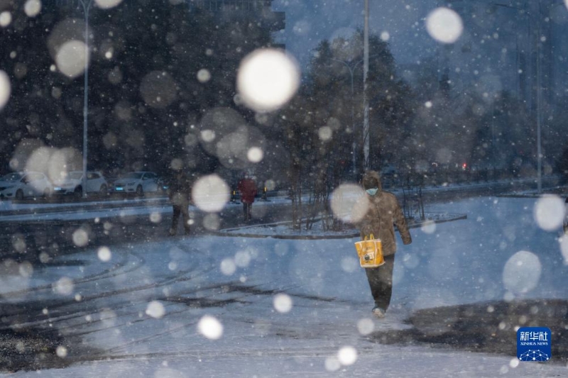 11月6日,在哈爾濱市香坊區(qū),行人在雪中行走。