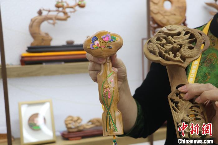 “我們打破了傳統(tǒng)桃木雕刻技藝,沒有雕刻,而是直接在桃木上鑲嵌了琺瑯彩?!鄙綎|省級非遺桃木雕刻民俗技藝傳承人王來新說,新品創(chuàng)作的靈感源于進博會,尤其在參加完第二屆進博會后,他才真正了解市場的需求,并推出創(chuàng)意產品,目的是讓更多年輕人喜歡上國潮國貨。