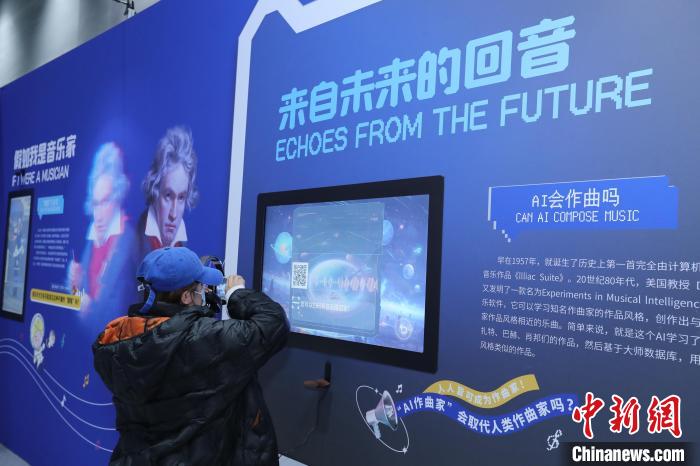 “未來音樂廳”展區(qū)則從音樂可視化、體感音樂游戲、人工智能(AI)作曲、腦波音樂等方面,展示當代最新科技為音樂創(chuàng)造的無限可能。通過音樂可視化技術,將音樂轉(zhuǎn)化為變幻的圖像,讓觀眾看到跳動的旋律躍然眼前;根據(jù)科研數(shù)據(jù)制作的“上帝粒子”音樂等,讓觀眾欣賞到屬于科學家的獨特浪漫。