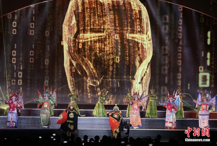 2023年10月18日晚,第81屆世界科幻大會(huì)在四川成都開(kāi)幕,這是世界科幻大會(huì)在其80余年發(fā)展史中首次在中國(guó)舉行。圖為大會(huì)表演科幻秀《攬星》。中新社記者 王磊 攝