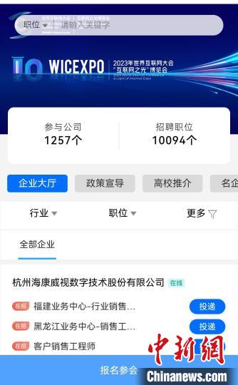 官方介紹,求職者可通過"世界互聯(lián)網(wǎng)大會(huì)"微信公眾號(hào)、世界互聯(lián)網(wǎng)大會(huì)官網(wǎng)、掃描二維碼等方式在線參加本次活動(dòng)。(完)