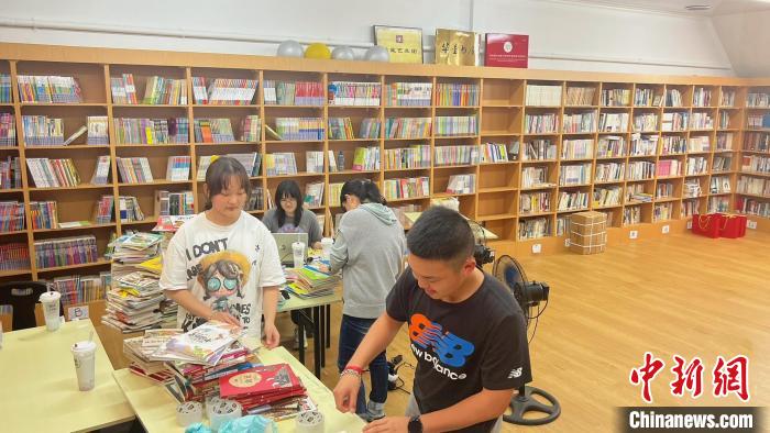 近日,南非開普敦華僑華人文化交流中心圖書館中,華裔青少年們正在整理書籍。(受訪者供圖)