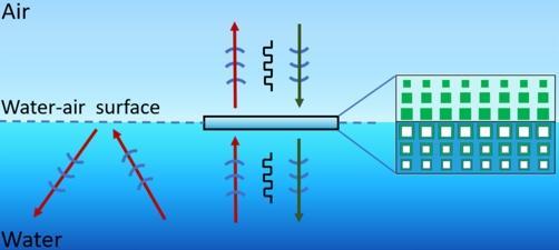 據(jù)科研團(tuán)隊(duì)介紹,隨著人類對(duì)海洋世界的探索與開發(fā),實(shí)現(xiàn)水氣間的跨介質(zhì)通信變得十分重要。由于聲波在水和空氣中均能夠遠(yuǎn)距離傳播,因此被認(rèn)為是實(shí)現(xiàn)水-氣跨介質(zhì)通信最可行的載體。然而,由于水和空氣之間存在巨大的阻抗差異,當(dāng)聲波直接入射到水-氣界面時(shí),僅有0.1%的聲能量能透過界面?zhèn)鞑?,這給基于聲波的水-氣通信帶來巨大的挑戰(zhàn)。以往針對(duì)水-氣傳輸?shù)难芯炕揪窒拊诨诠舱竦恼瓗曇魝鬏?,這大大限制了通信容量和效率。