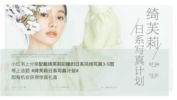 首先是取勢(shì),面對(duì)美瞳美妝融合的行業(yè)大勢(shì),綺芙莉熱銷爆款「柔霧系列」成為美妝概念的首次嘗試,該系列從流行彩妝中汲取創(chuàng)作靈感,提煉出日系彩片的色彩與線條。綺芙莉?qū)⒚缞y中展現(xiàn)干凈霧面感和局部高光提亮的概念,結(jié)合瞳色運(yùn)用到“柔霧”系列彩片中。通過運(yùn)用細(xì)膩微光顆粒網(wǎng)點(diǎn)設(shè)計(jì)結(jié)合瞳色美學(xué),讓女性的眼眸呈現(xiàn)霧感顯色,自帶光環(huán)效果,展現(xiàn)女性溫柔且堅(jiān)定的力量感。對(duì)于日常素顏淡妝,有上眼溫柔好看的赤陶棕、宛若媽生瞳的烤杏棕;對(duì)于輕混血妝容,有深邃微擴(kuò)瞳又軟糯溫柔的奶咖棕;而清冷高級(jí)的藤霧灰則帶來更強(qiáng)混血感,令瞳色與混血妝容渾然一體,自然融合。綺芙莉以差異化的產(chǎn)品打出品牌特色,強(qiáng)化用戶忠誠(chéng)度,形成品牌專屬,延長(zhǎng)產(chǎn)品生命周期。