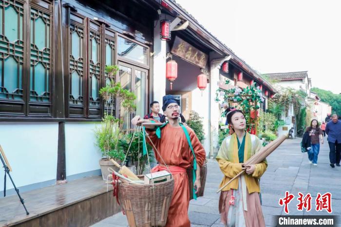 而在大運河遺產(chǎn)點北京后海,杭州“送花姑娘”陳喜悅與“貨郎一青”吸引了北京市民游客的目光,還有來自廣西藝術學院學生在現(xiàn)場獻藝,清唱廣西民歌,“嗨翻”后海。