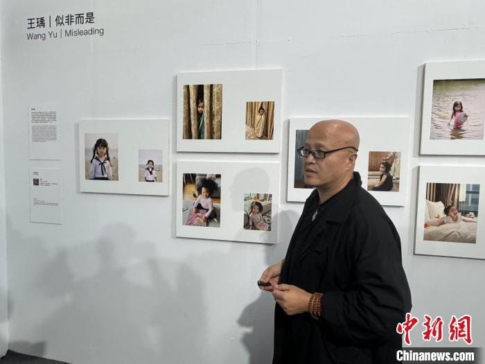 11月8日,策展人羅大衛(wèi)介紹AI影像藝術(shù)作品?!≈行律缬浾?周健 攝