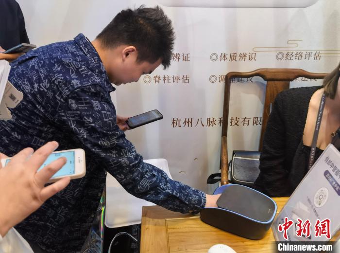 在體驗區(qū)的國學健康驛站,被稱為AI“老中醫(yī)”的智能中醫(yī)體檢儀備受參觀者青睞。這款中醫(yī)數(shù)字化AI輔助診斷智能硬件,通過智能學習可精準地模擬出老中醫(yī)把脈結(jié)果,實現(xiàn)2分鐘做一次智能體檢,全面健康評估和風險預警。
