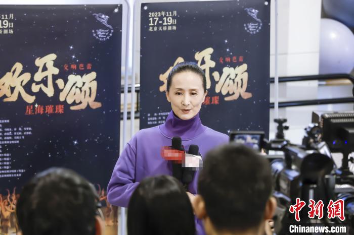 中芭團(tuán)長(zhǎng)、藝術(shù)總監(jiān)馮英介紹《歡樂(lè)頌·星海璀璨》相關(guān)情況?!≈醒氚爬傥鑸F(tuán)供圖