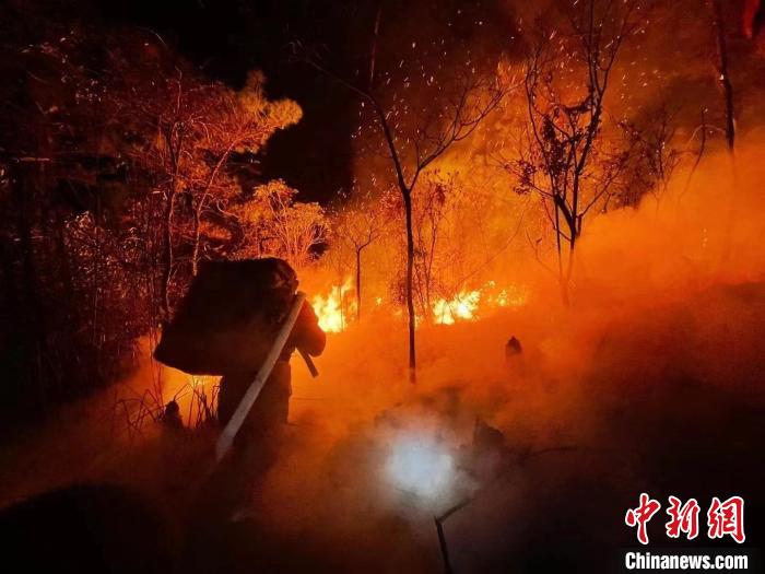 2022年10月,江西贛州發(fā)生森林火災(zāi),大火連續(xù)燃燒4天3夜。其中一個夜晚,火場風(fēng)向突變,火線向山脊另一側(cè)的窯背村蔓延,直接威脅周邊民眾的生命安全。