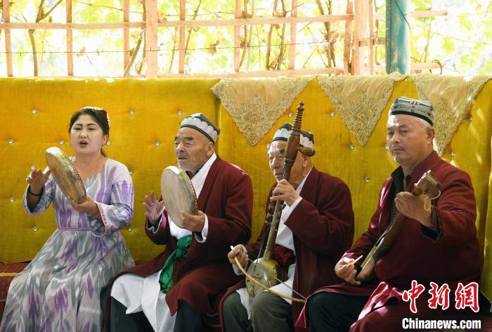 中新社新疆麥蓋提11月9日電 題:“刀郎歌王”:傳承木卡姆就像陽光灑在葡萄藤上一樣自然