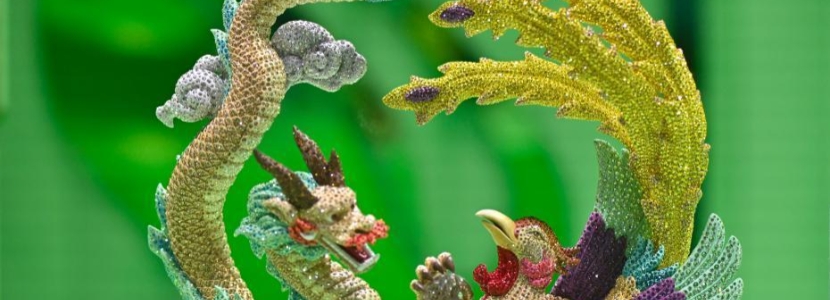 11月9日,消費品展區(qū)施華洛世奇展臺展出龍鳳呈祥樣式作品。據(jù)介紹,此設(shè)計運用大約30500顆施華洛世奇仿水晶,由工匠們耗費308個小時打造而成。第六屆中國國際進口博覽會于11月5日至10日在上海舉行?! ?/p>