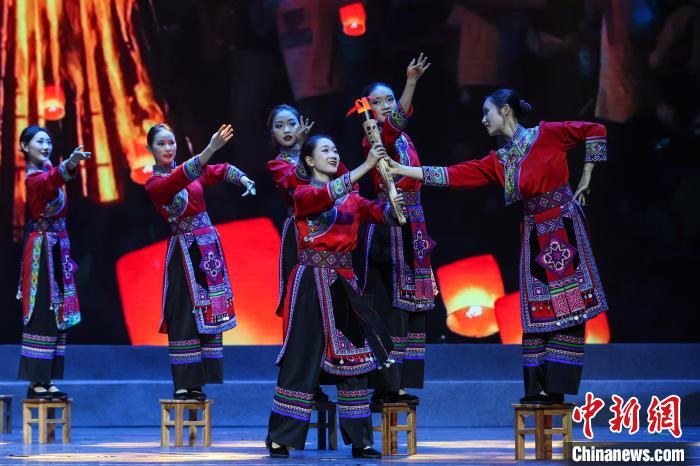 11月9日晚,2023多彩貴州文化藝術(shù)節(jié)優(yōu)秀劇目展演交流劇目——彝族歌舞劇《火之魂》在位于貴州省貴陽(yáng)市的北京路大劇院上演?!痘鹬辍肥歉鶕?jù)貴州省黔西南自治州晴隆縣彝族發(fā)展歷史及其特色民族文化,打造的一臺(tái)彝族文化演出劇目,共有“源”“亂”“隱”“興”四個(gè)篇章。