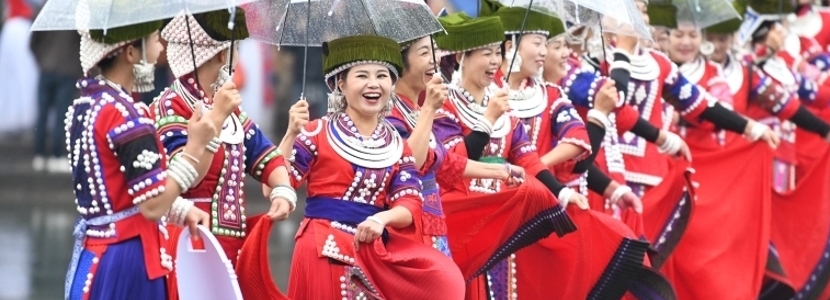 湖南鳳凰古城上演苗族“河上服飾秀”