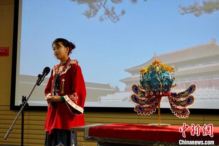 選手現(xiàn)場(chǎng)展示親手制作的鳳冠。陳欣怡 攝