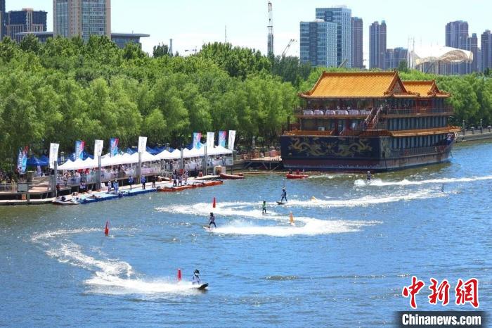 除游船項(xiàng)目外,大運(yùn)河文化旅游景區(qū)內(nèi)還多次舉辦槳板、動(dòng)力板和皮劃艇等體育休閑運(yùn)動(dòng)。今年7月開賽的2023年全國(guó)電動(dòng)沖浪板聯(lián)賽暨全國(guó)電動(dòng)沖浪板U系列比賽上,運(yùn)動(dòng)員駕駛著電動(dòng)沖浪板在大運(yùn)河畔踏浪飛馳,在千荷泄露大橋下縱橫穿梭,呈現(xiàn)了激情四射的水上運(yùn)動(dòng)與生機(jī)勃勃的城市圖景完美結(jié)合的場(chǎng)景。