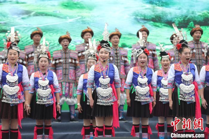 近日,在第二十屆中國(柳州·三江)侗族多耶節(jié)上,廣西三江縣侗族民眾在演唱侗族大歌。龔普康 攝