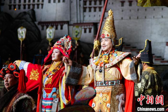 圖為劇中再現(xiàn)文成公主與松贊干布相會(huì)。貢確 攝