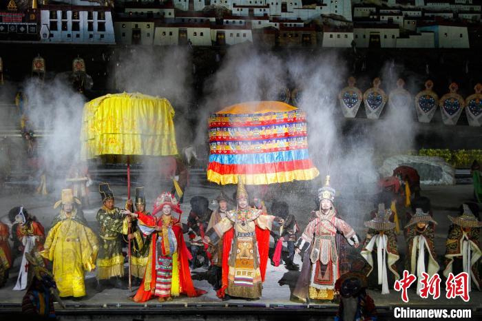 圖為《文成公主》藏文化大型史詩(shī)劇演出現(xiàn)場(chǎng)。貢確 攝